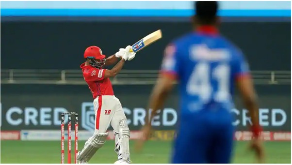 The KXIP skipper reached his 17th IPL 50 off 35 balls in the 12th over. He started slow but now had joined the party with hitting sixes all over the park. He maintains the highest strike rate of 369.2 in ‘the slot’ (length of the pitch) vs seamers in this season. He surely is a KLassic hitter with Mayank Agarwal playing all shots (reminds us of Mr. 360) including the famous Nataraj shot played by Kapil Dev and what a ground to play such a shot at!