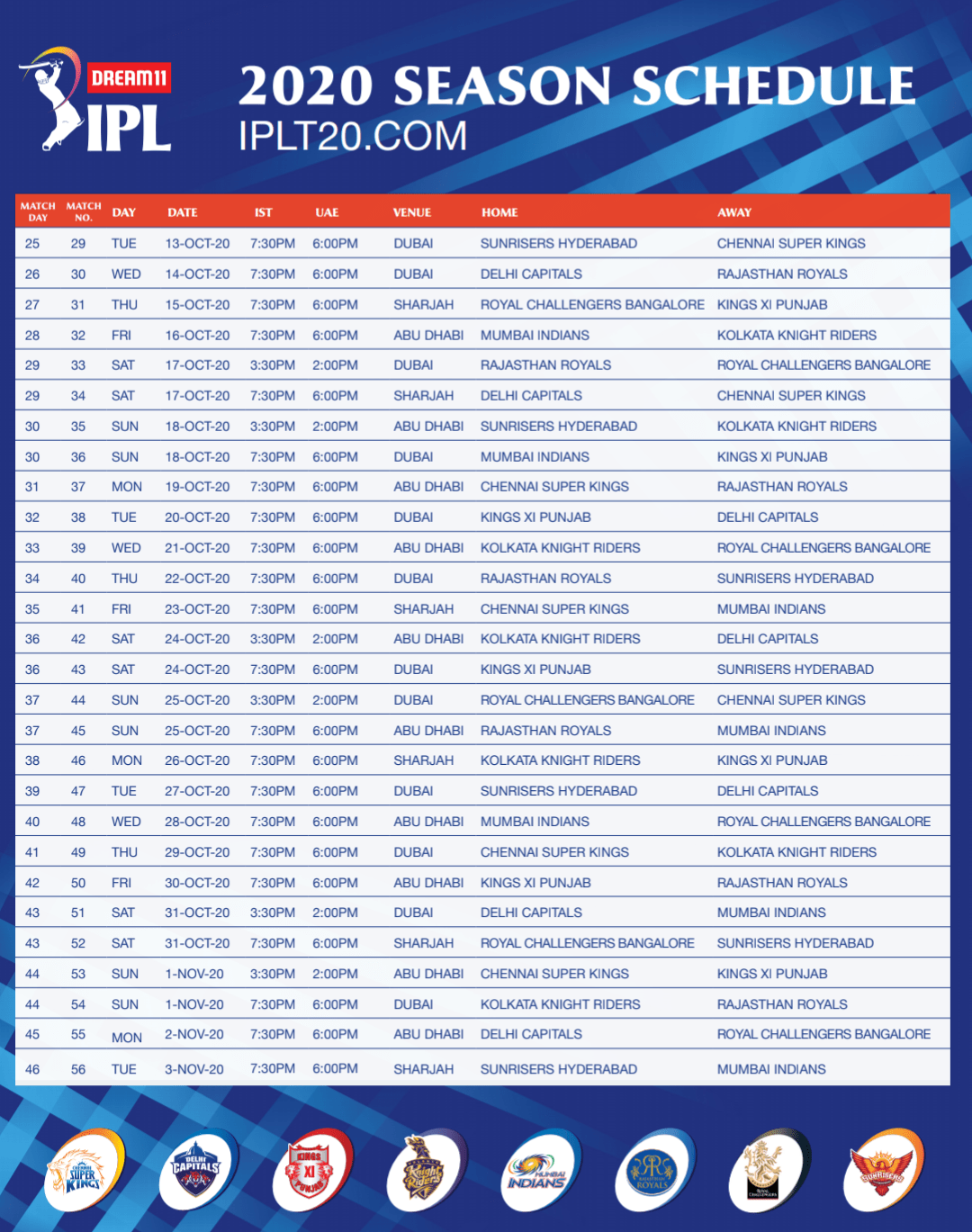 Indians : Priyam Garg and Virat Singh for SRH, Darshan Nalkande for Kings XI Punjab, Sai Kishor and Ruturaj Gaikwad for Chennai Super Kings, and Kartik Tyagi for Rajasthan Royals.